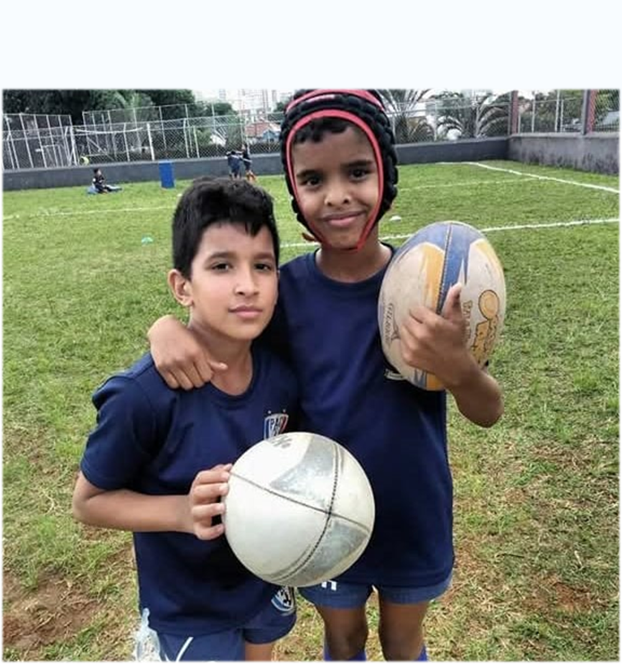 Rafael e Daniel descobrindo o rugby há 10 anos